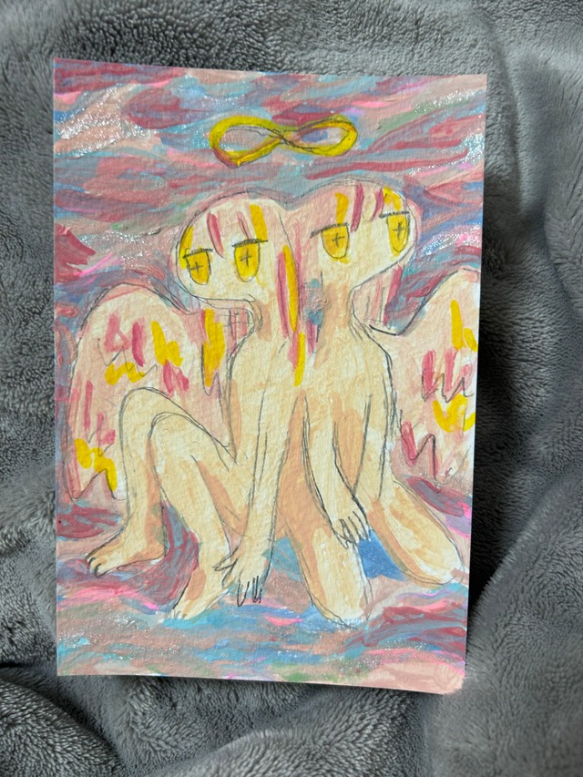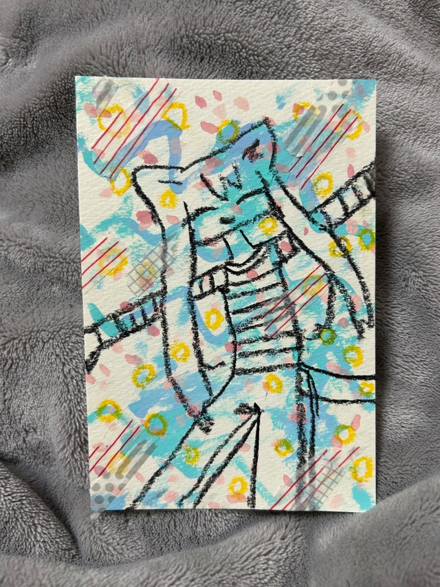 はがきサイズ 画用紙 アクリルガッシュ 鉛筆